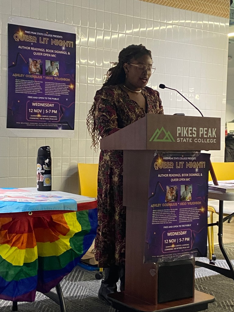 I’m happy to share that Queer Lit Night has been rescheduled for Wed, Nov 12 from 5-7 pm at the Pikes Peak State College Downtown Learning Commons, 100 W. Pikes Peak Ave, Colorado Springs. The evening will feature readings and performances from two amazing queer writers, Poet Laureate Ashley Cornelius and Nico Wilkinson. I’m the host/organizer/MC, and I’ll read my work as well.