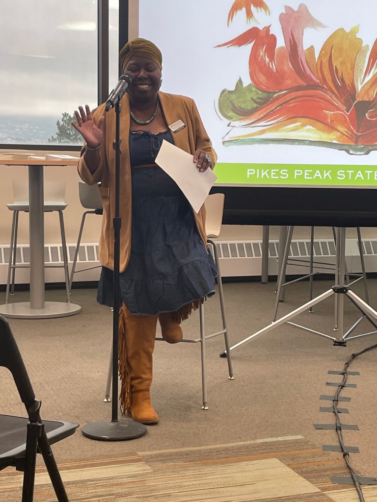 The inspiration and community at the Castle Rock Writers’ Conference on Saturday was delicious! I went with M.R. Hyde, Maddie Van Batum, and Lisa Macedo from my amazing writers’ group, the Nearby Universe. Poetry track presenters included brice maiurro (ecopoetics) and Poet Laureate Marissa Forbes (historical poetry), who were both fantastic. The icing on the cake was a book swap: Only Flying and Pen and Pulse for Marissa’s exquisite, eye-opening collections, Surviving Peter Pan and Brief and Bleeding Margins. Score! I also walked out with two new poems in my pocket, and my fingers crossed for getting a cool indie bookstore to carry Only Flying. Fiction/creative nonfiction workshops were courtesy of the Gemini Writers’ Studio, and there was a panel on publishing for everyone. Thank you, PPSC, for sponsoring our attendance — we learned so much and had so much fun. Photos courtesy of Castle Rock Writers.